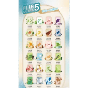 ILIA Ultra5 五代小煙煙彈專為小煙愛好者設計,採用陶瓷霧化芯技術,搭配35mg尼古丁濃度,提供濃密煙霧與強烈擊喉感。22種口味包括薄荷冰、藍莓、荔枝冰、草莓奇異果,滿足多樣化需求。五重防漏設計與食品級原料確保安全可靠,不兼容ILIA五代及RELX五四六代電子菸主機,靈活方便。