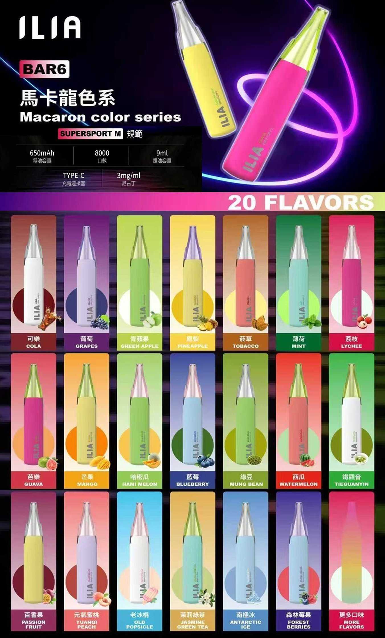 🔥 ILIA 哩亞 6 代 BAR 6|8000 口 一次性拋棄式電子煙